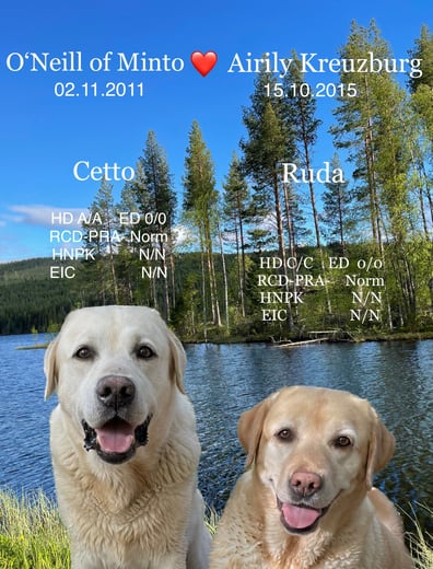 Mit Freude melden wir die Verpaarung von unserer schwarzen Hündin Berry of Minto und dem gelben Rüden Tuure of Finnwoods. Wir erwarten, wenn alles gut geht auf mitte Oktober gelbe und schwarze Welpen.