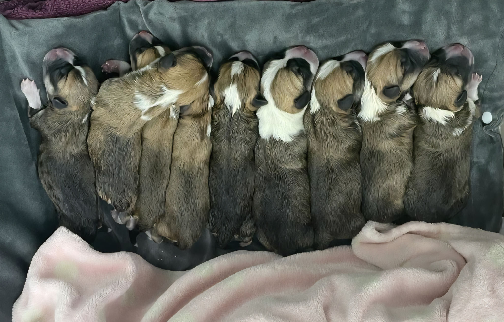 Berry of Minto x Tweedledum Off The Cuff sind Eltern von 9 munteren, schwarzen Welpen geworden.